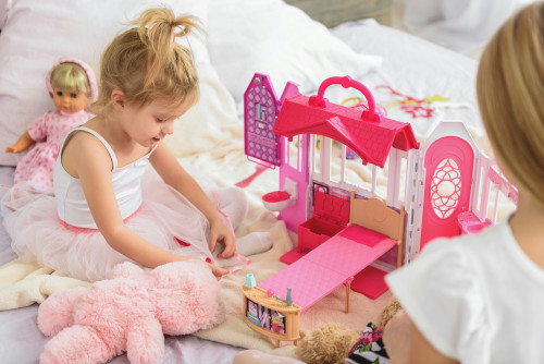 - Färgglad version: Kombinerar rosa och lila nyanser som fångar barnets uppmärksamhet.