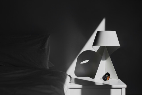 När lampan är tänd avger den ett mjukt och behagligt ljus som kastar runda skuggor på väggen. Även när den är släckt fungerar den som en skulptural dekoration i rummet.